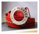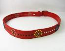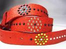 ★お色見は、ベルト本体が鮮やかなレッド(赤)です。 ★装飾はシルバーカラーのバックルと、イエロー、グリーン、レッドなどのマルチカラーのアクセントが入っています。