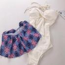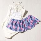 フリルデザインが可愛らしいカバーオールがセットになったワンピースタイプの水着
