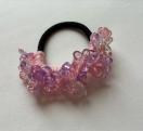 さくらとキラキラビーズを盛り盛り編み込んで、ヘアゴムを作りました。