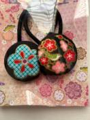 和柄の生地でくるみボタンのヘアゴムを作りました。