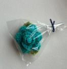 抗菌防臭の毛糸で薔薇を編んでアクリルたわしを作りました。