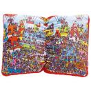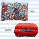 ウォーリーをさがせ!』の絵本をモチーフにした、折りたたみ可能なふかふかクッション。ページを開くと、枕としても使用できます。イラストに隠れている「ウォーリー」とべるーにゃにも注目です。