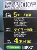 毎分33000回音波振動。5種の振動モード。2分後に自動停止。