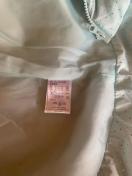 ユニクロ風水色のキッズ用ダウンジャケットです。全体にラメ加工が施されており、フードには白いファーが付いています。軽くて暖かく、これからの季節に活躍する一着です。