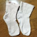 ご覧いただきありがとうございます。画像はアップロードいただいた商品です。こちらは使用済みのソックス1足(2枚組)です。長期間使用していたため、全体的に使用感があり、特に片方のつま先部分に穴が開いています。また、全体的に色褪せや毛玉、汚れが見受けられます。現状でのお渡しとなりますので、商品の状態を画像にて十分ご確認の上、ご入札ください。サイズ表記はありませんが、一般的な成人向けサイズかと思われます。特別なご要望がない限り、簡易包装での発送となります。ノークレームノーリターンでお願いいたします。ご理解いただける方のみご検討ください。締切日時