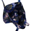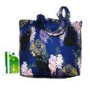 百華繚蘭の紺色の生地に愛らしい黒猫と、優雅な藤の花の和柄が美しいトートバッグとポーチのセットです。