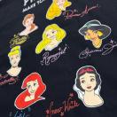 プリンセスキャラクターが描かれた半袖シャツ、黒と白の配色でスタイリッシュ。