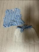 【新品未使用】青と白のチェック柄のフリルタンクトップとレース付きスカートのセット。