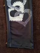 おしゃれなハート柄のデザインが施された、レディース用スパッツ(レギンス)です。ダークグレーの落ち着いた色合いながらも、ヒップと裾部分にあしらわれたキラキラとしたハートがアクセントとなり、個性を引き立てます。