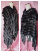 ┗裏地なし。フロントホックボタン2箇所開閉。フード取り外し不可。落ち着いたカラーのストライプボーダー柄が素敵☆全てが天然素材で高級感しかない♪裾ランダム&フリフリのフリンジがお洒落です☆ふわふわフンワリ軽くて柔らかくて肌触りがとても気持ちいいです♪編んでて伸縮性があるので誰でも着れます♪肩に掛けるだけで暖かいですよ♪本革レザーベルトの飾りも凝ってて更に高見えします♪あまり見かけないステージ衣装の様なデザインがレアで、お洒落カッコいい高級感あふれる毛皮ケープポンチョです☆