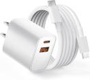 USB PD&Quick Chargeはデュアルポート充電に対応しています。充電器の最大出力を各ポートに均等に割り当てることができます。自動的に機器の接続を検知し、適切な電力レベルに調整します。同じ充電器や充電ケーブルを使用しても、接続する機器によって出力が変わります。(例:最大20Wまで使用可能な本製品の充電器は、タブレットとスマートフォンを同時に充電する場合、最大20W×1(タブレット)と18W×1(スマートフォン)を使い分けられます。詳細は取扱説明書をご参照ください。)