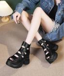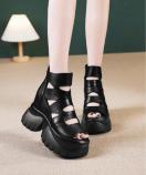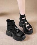 蒸れないサンダル夏/ サマーブーツ美脚/夏ショートブーツ黒