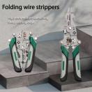 多機能電気技師用ワイヤーストリッパー - 折りたたみ式、剥離・切断・圧着用ツール、滑り止めグリップ、金属製