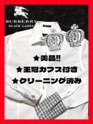 ★美品+クリーニング!★新品の王冠カフス*プレゼント!◆送料無料◆激レア!バーバリーブラックレーベル長袖シャツM*高級感Wカフス袖